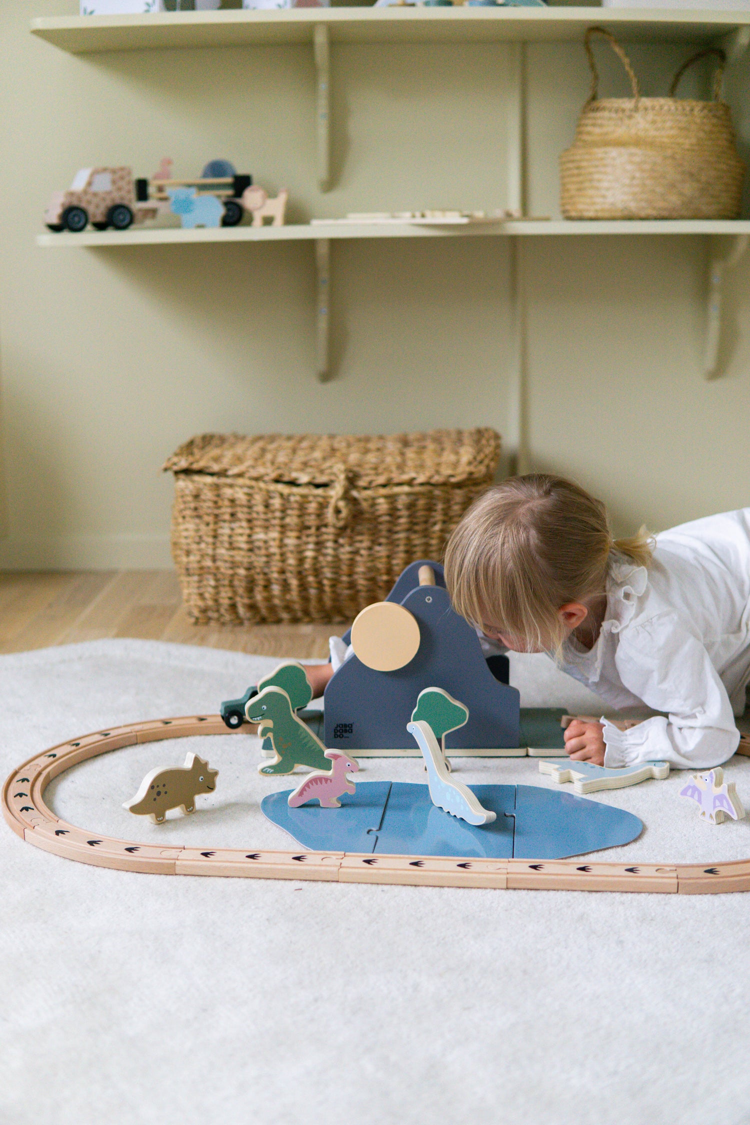 Set off on an imaginative journey into the heart of the savannah. This charming wooden train set invites hours of creative play as children explore a world filled with lions, giraffes, elephants, and other wild animals. The wooden tracks wind around a large, beautiful tree and pass a watering hole where the animals gather to drink and rest. Everything is made from durable wood and painted in calm, harmonious colors that appeal to both children and adults. The figures are designed for small hands and encourage storytelling, role play, and imagination. The little train, along with the animals and nature-inspired scenery, creates an inspiring environment where every playtime becomes a new adventure. The Wooden Train Safari is ideal for children aged three and up – a fun, safe, and educational toy that also makes a beautiful addition to any child’s room.