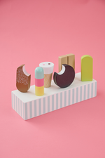 Oodles of Ice-cream! Set out a feast in your shop or cafe with our lovely ice-cream box. The ice-cream box contains 6 different flavored yummy ice-creams to choose from. Which is your favourite, ice cream or popsicle?. In this retro ice cream box you will find the most common ice creams. Do you recognize any of them?