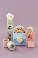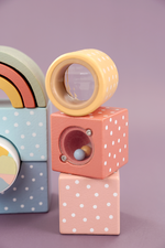 Discover a whole new world of sounds and shapes with Sound Blocks! This set of sound blocks offers endless possibilities for play and exploration. Each block is unique – some rattle, others chime, and some feature soft colors and patterns that appeal to all little adventurers. Sound Blocks are perfect for developing fine motor skills, coordination, and curiosity. Build towers, listen to the sounds, and enjoy these creative and sensory-stimulating blocks!