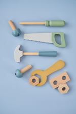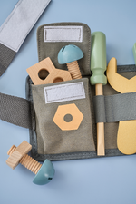 Practical carpenter's belt for the little carpenter. Now you can help out at home when it comes to nailing and hammering. With the carpenter's belt, you have everything you need to build anything you want. The belt comes with a Velcro strap that is easy to fasten around the hip and then you are ready to start carpentry! The belt is cleaned with a sponge surface wash. Approved from 18 months and up.Made from FSC™-certified wood (FSC™C194598).