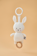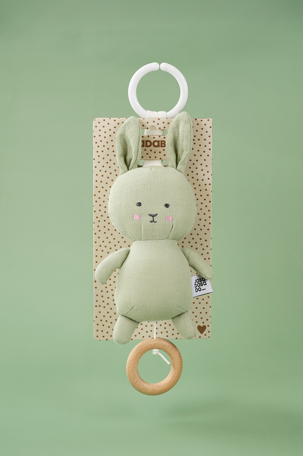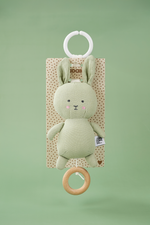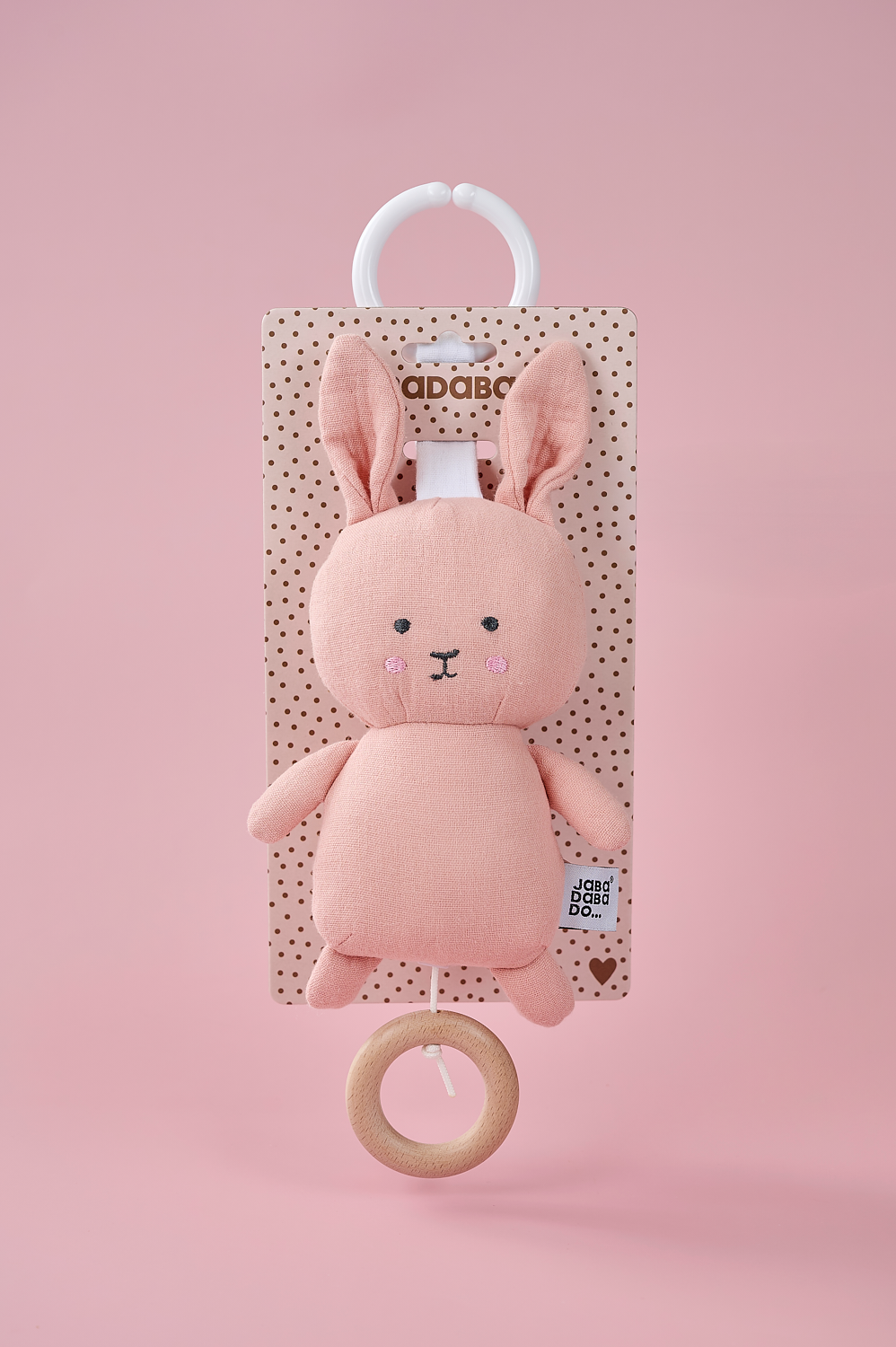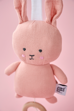 Jabadabado's textile musical pull with the popular Bunny character in pink. The musical plays a calm melody (Brahms Lullaby) and is easily mounted in place using an elastic ring that works in most places. The musical entertains and stimulates the child while the music is playing and is ideal as a gift for the newborn or as a christening gift.