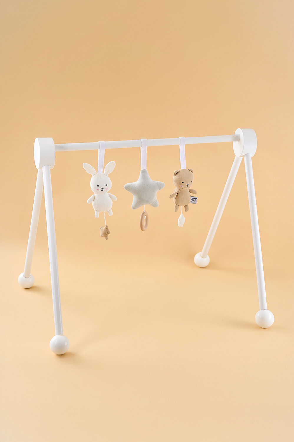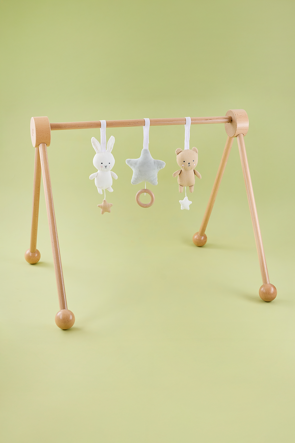 Wooden baby gym in modern design that will be a peaceful and stylish addition to your home. Complement with our soft baby gym toys that will offer a fun distraction for the baby while stimulating development of their visual and motor skills. Baby gym designed with clean lines
