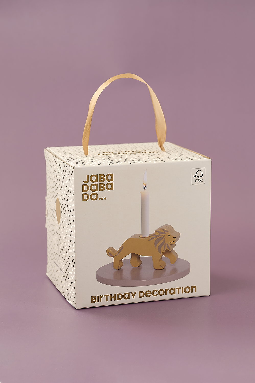 Hip-hip-hooray! Let Jabadabado's candlestick in the shape of a lion decorate the table or breakfast tray every birthday morning. Let it become a beloved tradition at all your birthday celebrations. The candlestick comes beautifully packaged in an exclusive gift box, making it an excellent and appreciated gift. We recommend complementing it with number balloons 0–9, sold separately, which can be attached to the candlestick. Candles are sold separately.