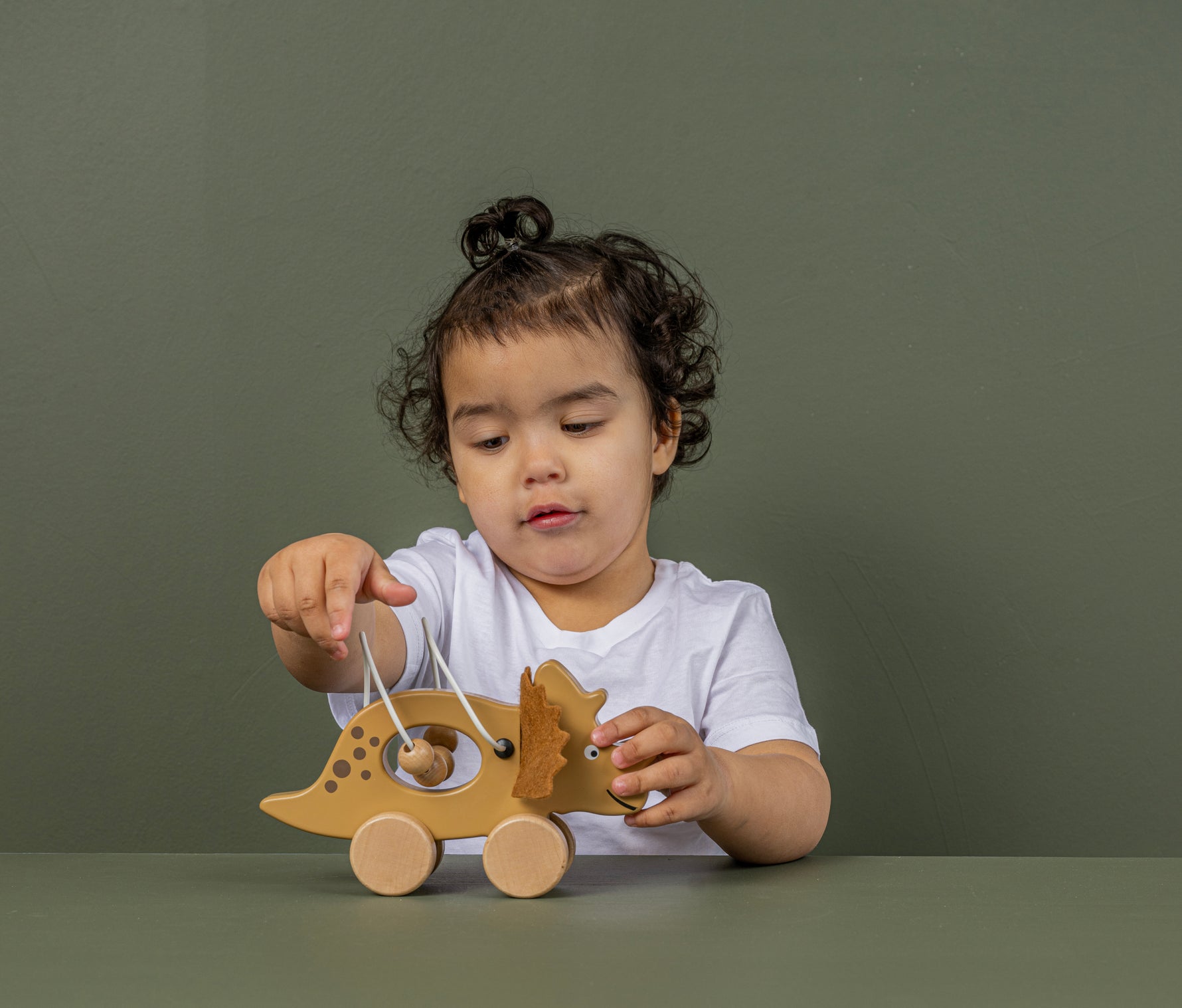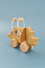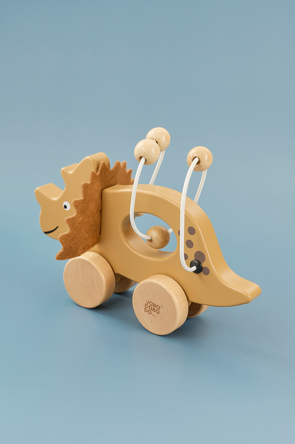 Roar!!! A wonderful wooden abacus with abacus in the shape of a dinosaur. The dinosaur is designed to be easy to grip, perfect for small children's hands. With wheels as feet, the dinosaur rolls quickly and easily across both carpet and floor. The dinosaur also has a ball frame around it with 5 small balls that you can easily move around. Made from FSC™-certified wood (FSC™C194598).