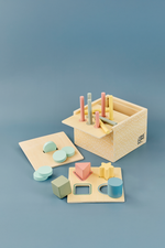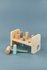 Hammer peg. Toddlers are attracted to this timeless toy, where they can explore the art of hammering. The toy stimulates color recognition, hand-eye coordination, fine motor skills and inspires creative play.