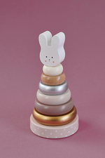 The stacking tower is a classical must-have-toy for all the little ones. This stacking tower have different colours and is decorated with a wooden Bunny at the top. This toy will promote the child’s understanding of shape, colour and size differentiation. It also develops the child’s hand eye co-ordination and fine motor skill. The stacking pole is bendable for highest safety. Made from FSC™-certified wood (FSC™C194598).
