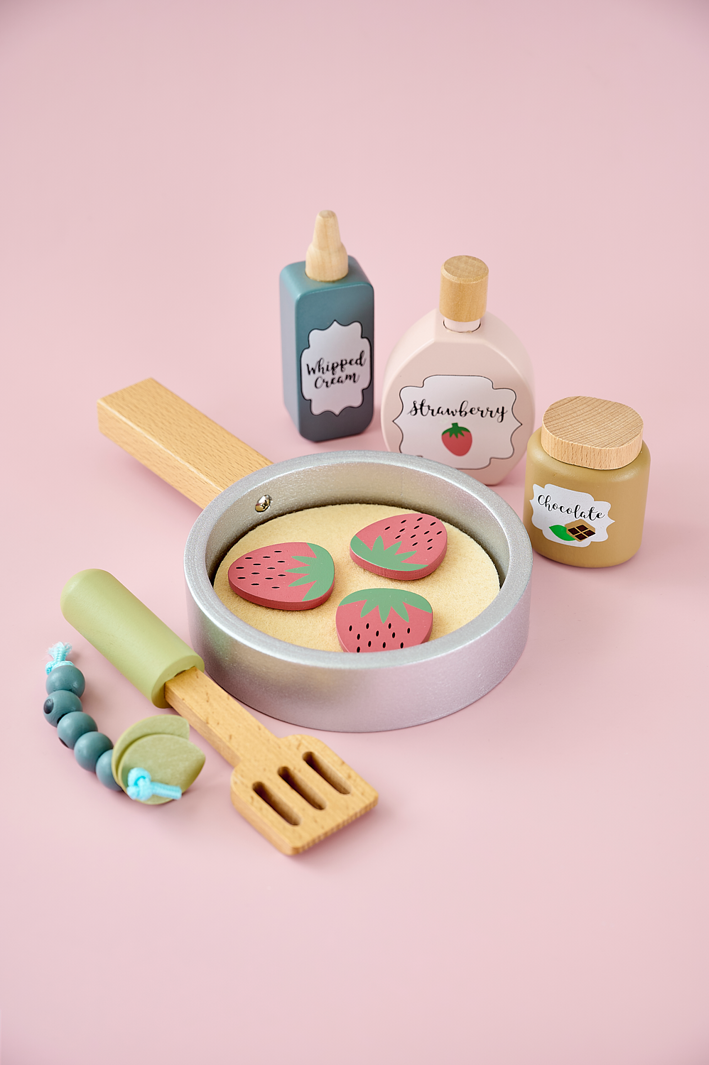 Now you can finally fry pancakes like a pro! With our new pancake set, you easily become the most popular in the kitchen. Invite friends and family for freshly-baked pancakes with all their tasty accessories. We promise you will impress. Made from FSC™-certified wood (FSC™C194598). Our pancake set contains 15 items: frying pan