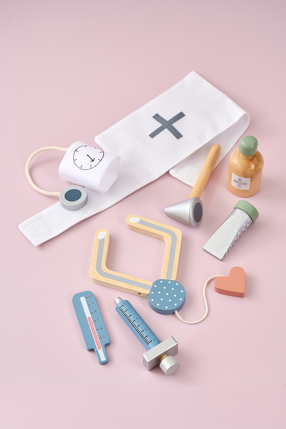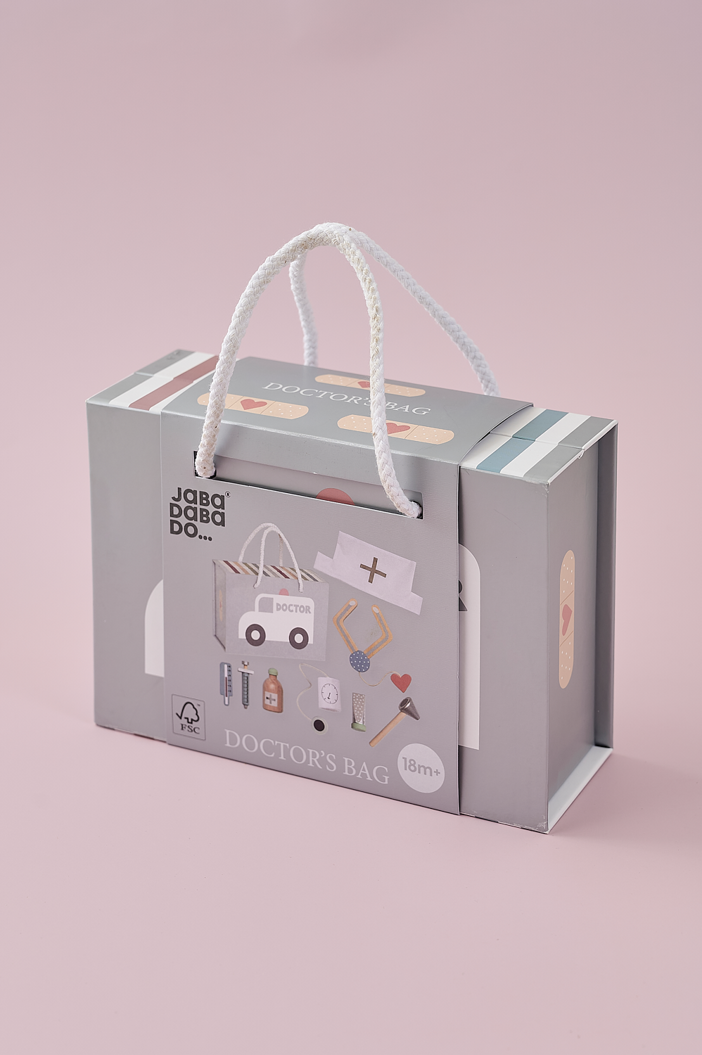 Välkommen till doktorn! Denna rosa läkarväska från Jabadabado innehåller all utrustning du behöver för att ge bästa möjliga vård till familj, vänner och husdjur. Man vet aldrig vem som kan behöva träffa en liten doktor. Ditt barn kommer att ha jättekul med detta läkarset som främjar kreativ lek och uppmuntrar dem att vara omtänksamma och hjälpsamma. Tillverkad av FSC™-certifierat trä (FSC™C194598). Läkarväskan innehåller: