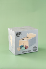 Rolig formsorteringslåda som är perfekt för små barn att klura ut. Formsorteringslådan hjälper barn att träna sin finmotorik och lära sig skillnaden mellan olika former och färger. Sorteringslåda i mjuka färger. Formsorteringslådan innehåller ett avtagbart lock och fyra olika former, triangeln Nalle, kuben och cylindern i fyra olika färger som passar i de olika hålen. Med denna låda lär sig ditt barn att det finns både olika färger och former. En rolig leksak där ditt barn kan öva finmotorik och koordinationen mellan hand och öga.