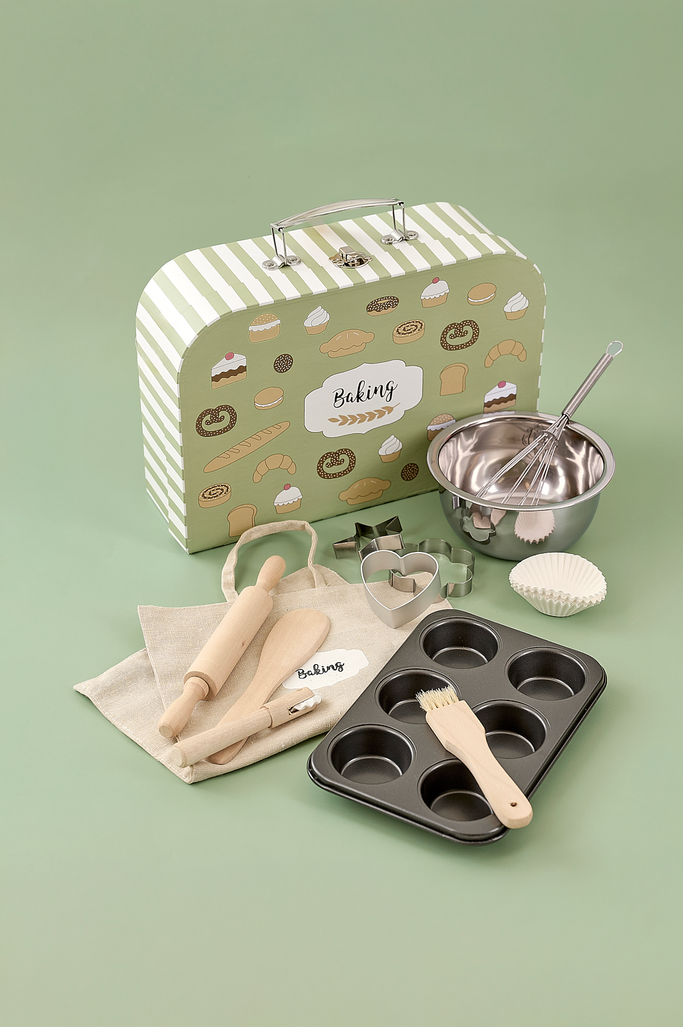 Bakset med 13 olika artiklar, garanterat timmar av skoj! Setet innehåller kavel, skål, ballongvisp och mycket mer. Allt prydligt förpackat i sin egen väska. Innehåller 13 artiklar med bakverktyg.