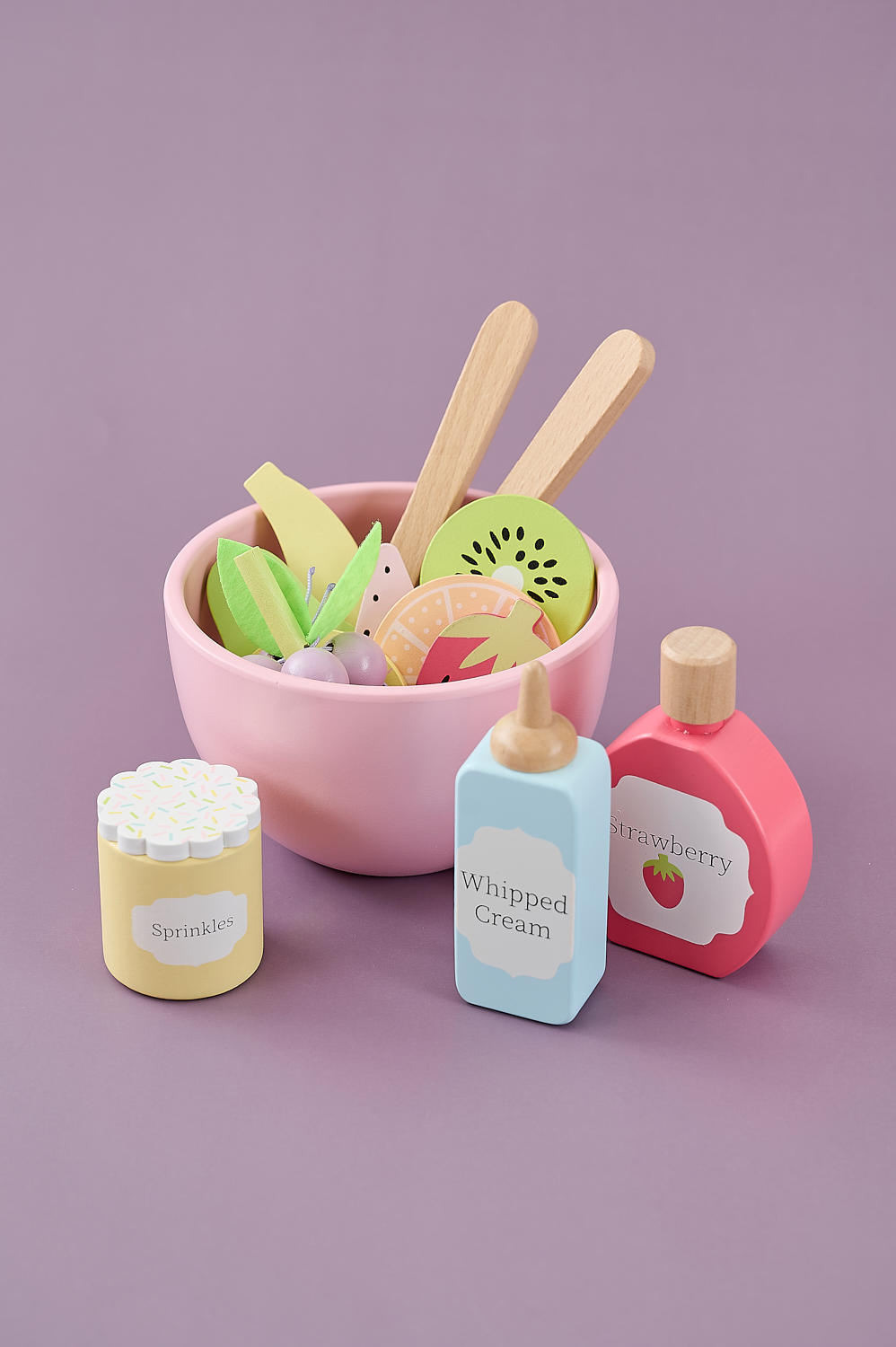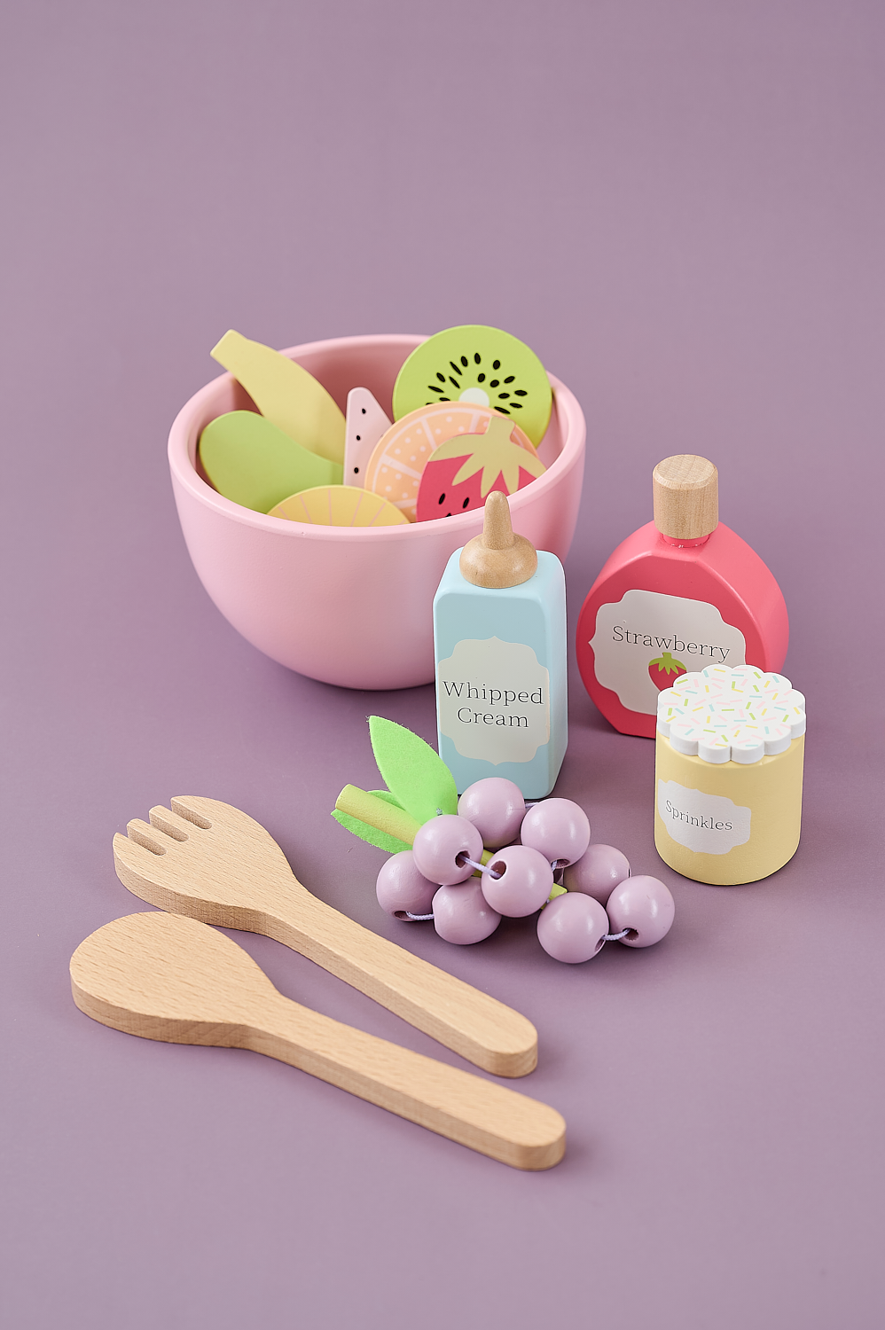 Fruktsallad med allt du behöver för att njuta av en smarrig färsk fruktsallad! Byt ut ditt fredagskaffe mot denna så blir det både hälsosammare och godare. Blanda all frukt i den fina träskålen och servera med vispad grädde, jordgubbssylt och strössel. Servera med det fina salladsbesticket som medföljer. Du kan också servera frukterna separat. Vem kan motstå detta! Tillverkad av FSC™-certifierat trä (FSC™C194598). Vårt salladsset innehåller: 1 ananasskiva